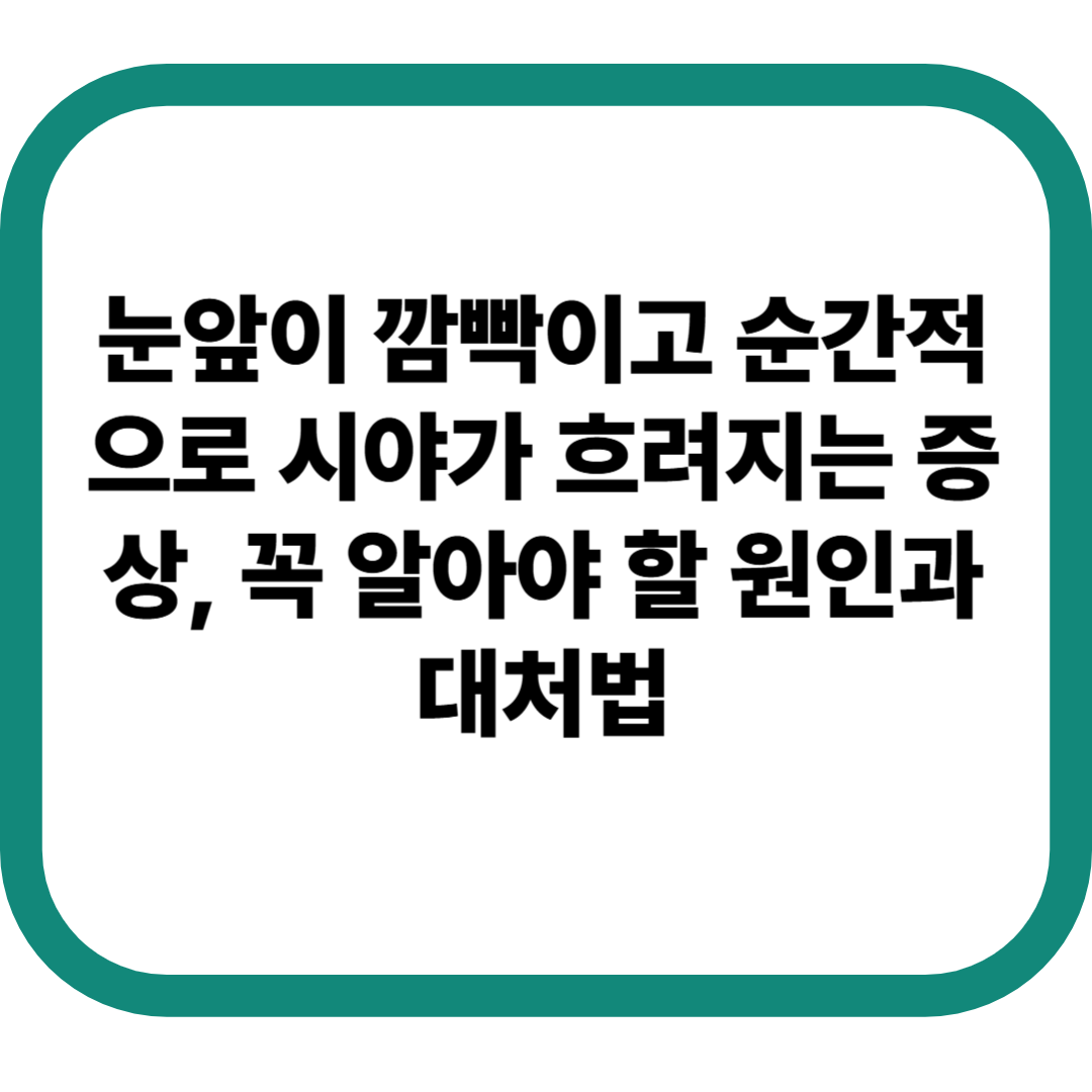 눈앞이 깜빡이고 시야가 흐려지는 증상, 단순 피로나 눈의 피로 때문일 수도 있지만 반복되거나 갑작스럽게 나타난다면 중요한 건강 문제의 신호일 수 있어요.