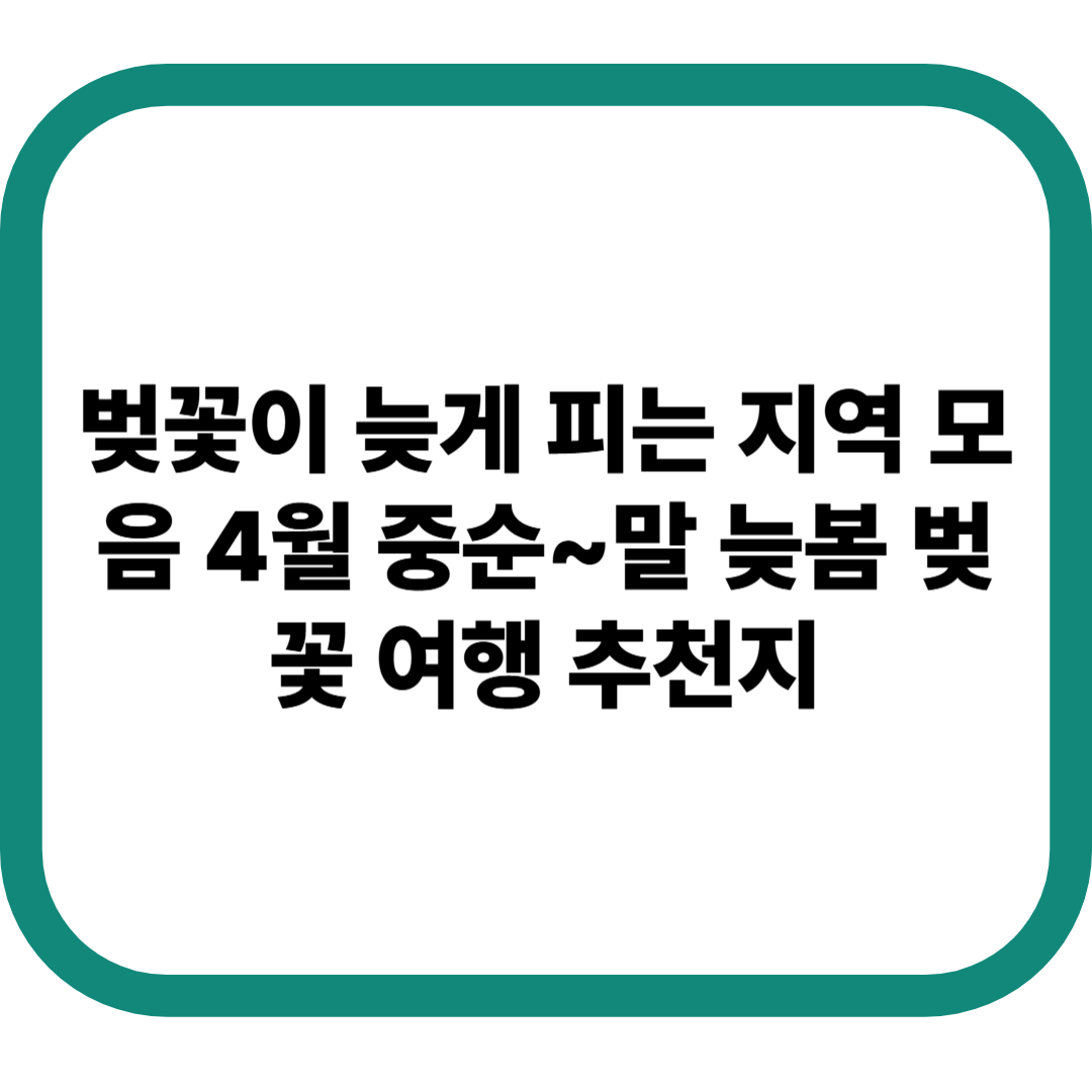 4월 초, 서울과 수도권 대부분의 벚꽃이 지고 나면 많은 사람들이 “아, 벚꽃 다 끝났네…”라고 아쉬워하죠. 하지만 아직 늦지 않았습니다! **대한민국에는 4월 중순부터 말까지도 벚꽃을 즐길 수 있는 ‘늦깎이 벚꽃 명소’**들이 있어요. 오늘은 벚꽃이 늦게 피는 지역 TOP 7을 소개하면서, 늦봄에도 충분히 설레는 벚꽃 여행을 떠날 수 있는 팁을 알려드릴게요.