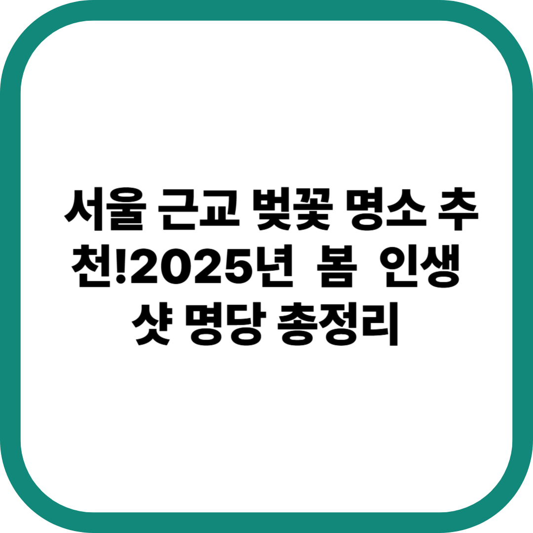 서울 근교 벚꽃 명소는 어디든 인파가 몰리는 만큼, 평일 방문이나 이른 시간대 방문을 추천드립니다. 또한 2025년 벚꽃 개화 예상 시기는 3월 말에서 4월 초이니 참고하시고요!
