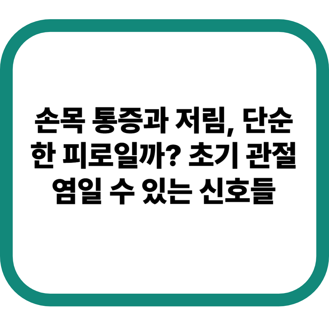 이번 글에서는 손목 통증과 저림의 주요 원인, 초기 관절염의 징후, 자가진단 방법, 그리고 정확한 대처법과 병원 진료 시점까지 꼼꼼히 알려드릴게요.