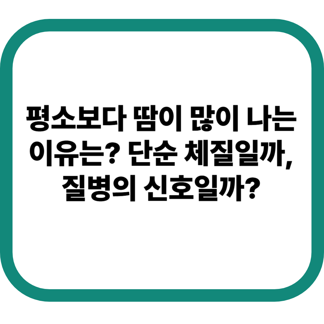 평소보다 땀이 많아졌다고 느끼는 순간, 단순히 체질이나 날씨 때문일 수 있지만, 내분비 질환, 감염, 신경계 이상, 약물 반응 등을 의심해볼 필요도 있어요. 특히 예전보다 확연히 땀이 많아졌다면, 우리 몸이 보내는 건강 이상 신호일 수 있습니다.