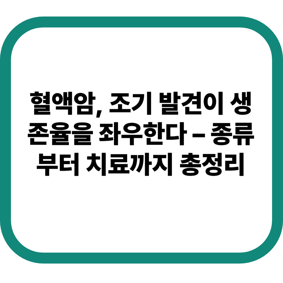 이번 글에서는 혈액암의 정의와 종류, 주요 증상, 진단 방법, 치료법과 생존율, 그리고 생활 속 관리 및 예방수칙까지 자세히 알려드릴게요.